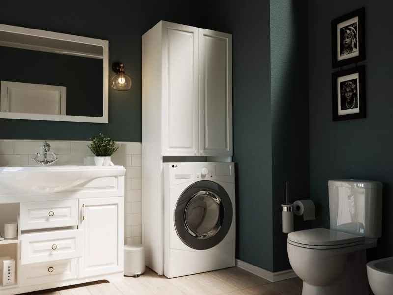 Шкаф Wall на стиральную машину позволяет рационально использовать свободное пространство в небольших ванных комнатах. Шкаф обладает большим внутренним пространством под хранение и поможет сохранить порядок в ванной. Внутренние полки регулируются по высоте. Материалы и комплектующие ведущих европейских производителей. Шкаф поставляется в разобранном виде, подробная инструкция по сборке прилагается.