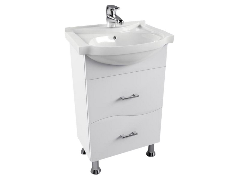 • На ножках, что позволяет увеличить срок эксплуатации мебели, так как в отличие от предыдущего варианта, дверные элементы не контачат с жидкостью, которая попадает на пол во время водных процедур.