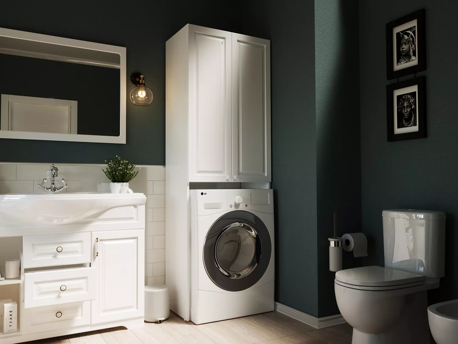 Шкафы для ванной изготавливаются из различных материалов: древесины, волокнистых клееных плит, пластика, натурального камня. Иногда они имеют форму пенала, что позволяет полностью использовать высоту ванной комнаты для хранения банных принадлежностей, не занимая полезную площадь. Поэтому такие шкафы прекрасно походят для ванных комнат небольших размеров.