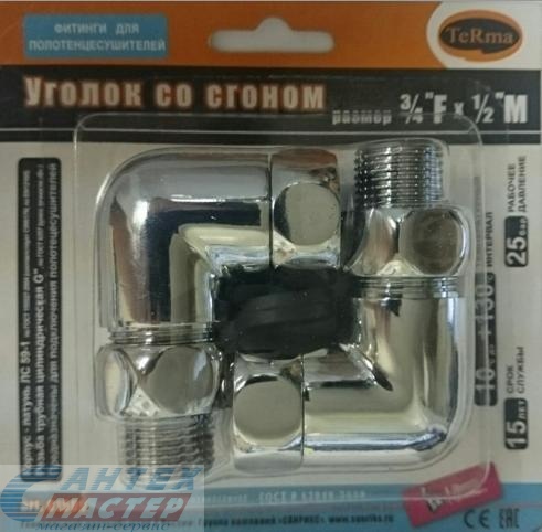 Переходник угловой со сгоном для полотенцесушителя 3/4"г*1/2"н (пара) (01509) Переходник угловой со сгоном для полотенцесушителя 3/4"г*1/2"н (пара) (01509)