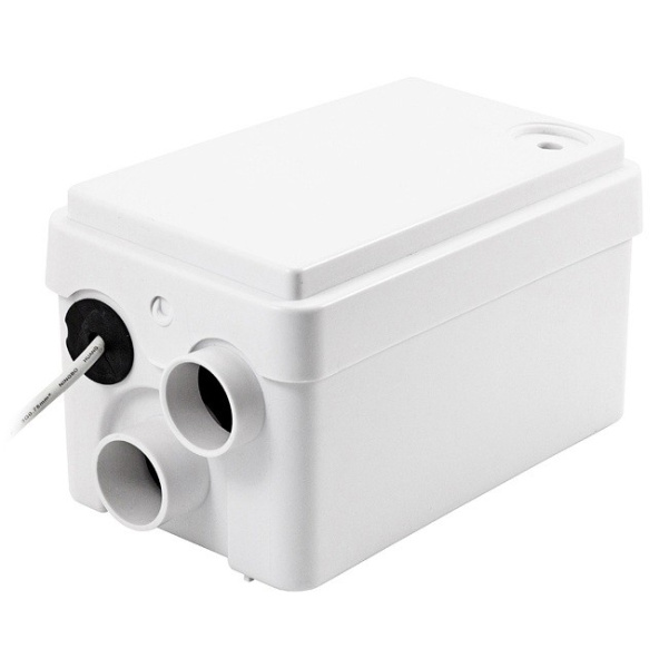 Бытовая канализационная насосная станция SANIVORT 255 A - предназначена для автоматического перекачивания сточных вод от душа и раковины, находящихся ниже уровня коллектора канализационной системы, а также в удаленных местах, где невозможно или нецелесообразно организовать канализацию самотеком. Корпус канализационной станции выполнен из легко моющегося пластика. Внутри корпуса установлен центробежный насос с рабочим колесом открытого типа и механизм автоматического включения/выключения. Корпус насоса изготовлен из пластика. Канализационная насосная станция имеет два входа для присоединения раковины и душа. Сточные воды отводятся в канализацию через выходное отверстие. К выходному отверстию присоединяется угловой патрубок, в который устанавливается обратный клапан для предотвращения возврата откаченной воды в станцию. На крышке корпуса станции расположено вентиляционное отверстие. Двигатель насосов станций КНС оснащен термозащитой, которая отключает его при повышении температуры выше критической (например, в