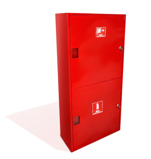Предметы, применяемые для пожаротушения, помещают в шкаф металлический пожарный. В нем отсутствует вероятность повреждения слабым огнем резиновых и тканевых рукавов. Баллоны с углекислотой также остаются в относительной безопасности, пока окружающая температура достигнет критических значений.