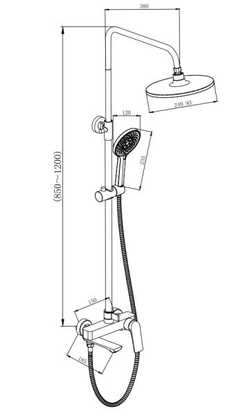| Душевая система с тропическим душем 250 мм черная OSGARD |