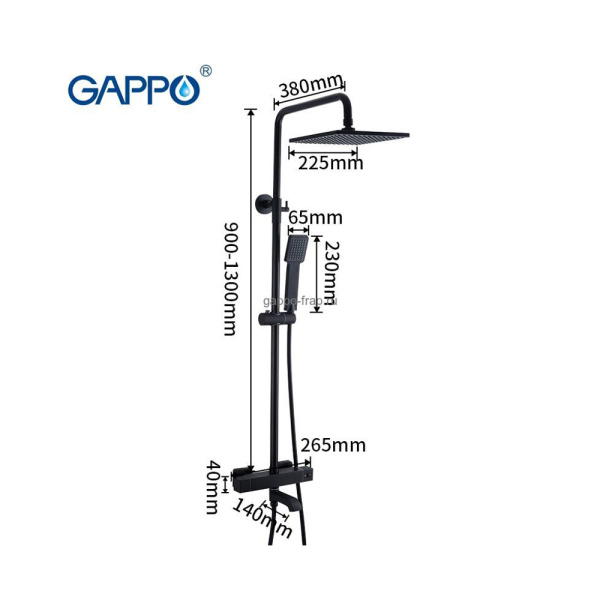 | Душевая система с тропическим душем 250х250 мм G2491-6 термостатическая, черная |