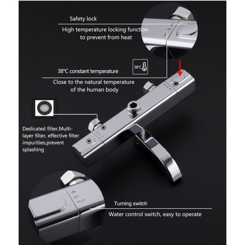 Предлагаем современную душевую систему с термостатом GAPPO G2491 в цвете хром. Вентильный термостат GAPPO G2491 обеспечивает комфорт во время принятия душа, поддерживая заданную температуру и напор воды. Он изготовлен из высококачественной латуни, что обеспечивает его коррозионную стойкость. Снабжен девиатором для переключения потоков воды. Устройство позволяет сократить расход воды, одним поворотом рукоятки прекращая ее подачу, например, во время намыливания. Эксцентрики снижают уровень шума льющейся воды. Излив поворотный, служит переключателем на душевую лейку.Артикул 27474 Марка: GAPPO Тип: душевая система -