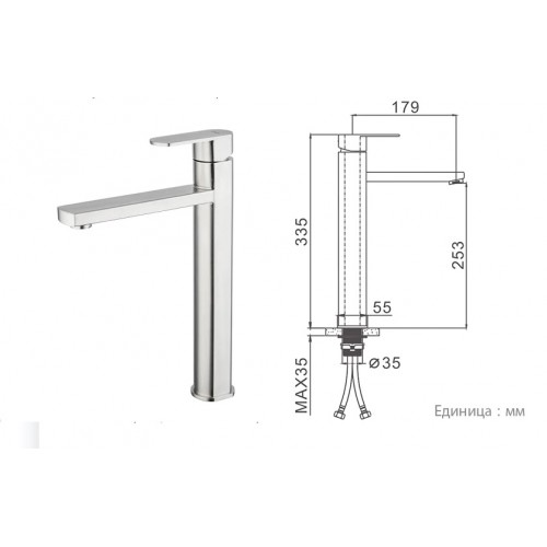 | Смеситель для умывальника Frap F10805-2, 35мм, сатин |