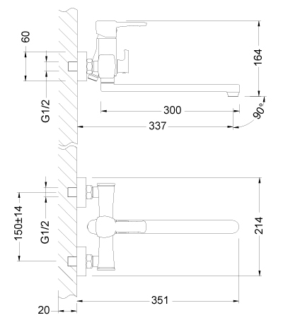 | Смеситель для ванны LM0551C "Эвитта" с пл. изливом 300мм |