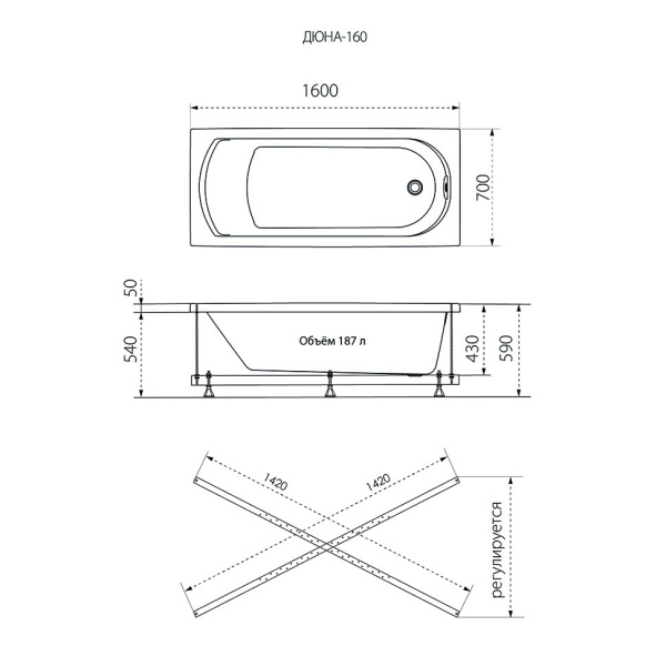 Бренд 1ACRealАртикул 55723 Марка: Triton Тип ванны: акриловая Форма ванны: прямоугольная Длина, см: 160 Ширина, см: 70 Глубина, мм: 430 Объем л: 187 Гарантия: 10 лет Производитель: Triton
