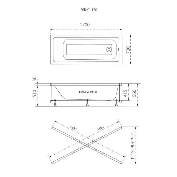 | Ванна акриловая Элис 170*70 на каркасе с экраном |