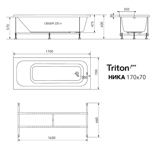 | Ванна акриловая Nika 170*70 на каркасе с экраном Triton Pro |