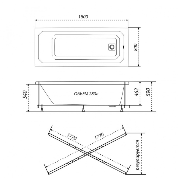 Место установки торцевого экрана для ванны На две стороныАртикул 51460 Марка: Triton Тип ванны: акриловая Форма ванны: прямоугольная Длина, см: 180 Ширина, см: 80 Глубина, мм: 462 Объем л: 280 Гарантия: 10 лет Производитель: Triton