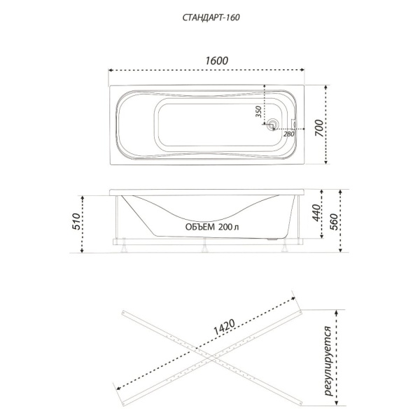Дата проведение Акции с 01.12.2025 по 31.03.2026Ванна акриловая Стандарт 160*70*57 на каркасе с экраном