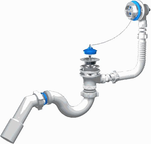 Сифон для ванны 1½"х40 с выпуском, переливом и гофротрубой 40х40-50 Е155/V155 Сифон для ванны 1½"х40 с выпуском, переливом и гофротрубой 40х40-50 Е155/V155