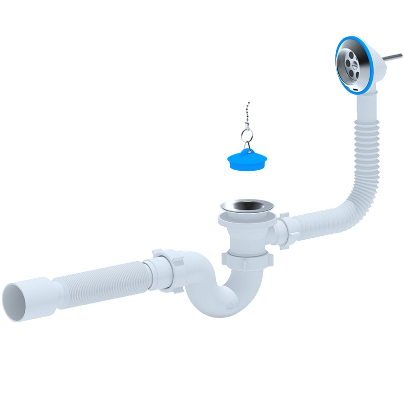 Сифон для ванны 1½"х40 с выпуском, переливом и гофротрубой 40*50 С6155 Сифон для ванны 1½"х40 с выпуском, переливом и гофротрубой 40*50 С6155