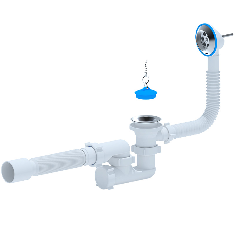 Сифон для ванны 1½"х40 с выпуском, переливом и гофротрубой 40*50 Е151 Сифон для ванны 1½"х40 с выпуском, переливом и гофротрубой 40*50 Е151